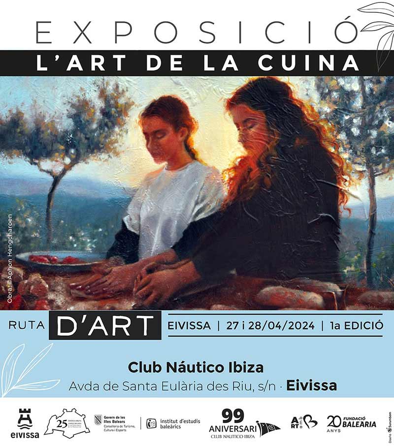 Exposición colectiva de Pilar Cerdà «L’Art de la cuina» en el Club Náutico de Ibiza, con motivo de la 1ª Edición de la Ruta d’Art d’Eivissa 2024. La exposición incluye numerosas interpretaciones del arte culinario por parte de artistas baleares e invitados.